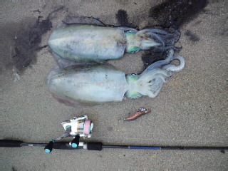 エギンガーの後輩も潮でエギが流れるらしくイカ現れず。。。