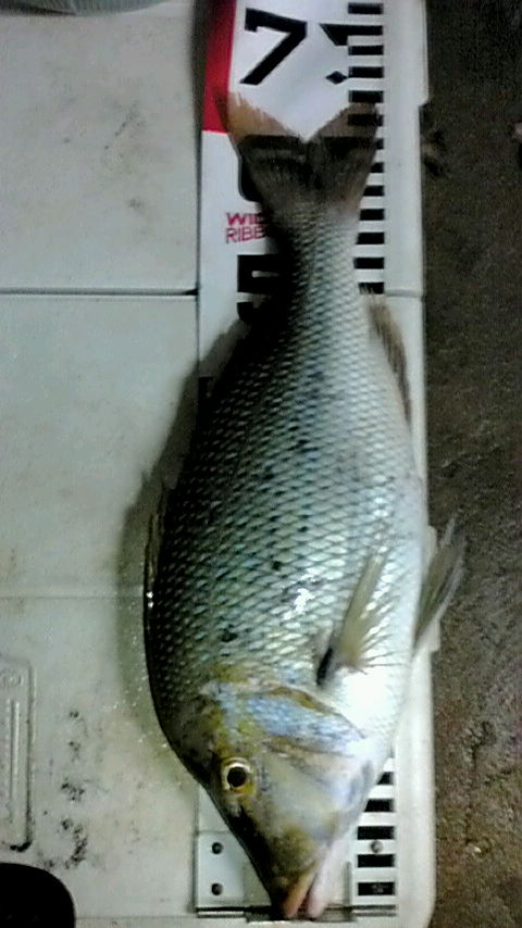 つんつん竿先をあげていると、しろーい魚影が。